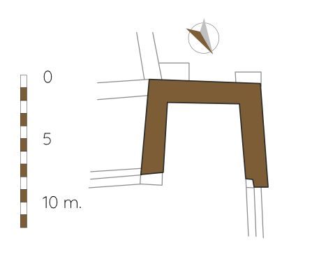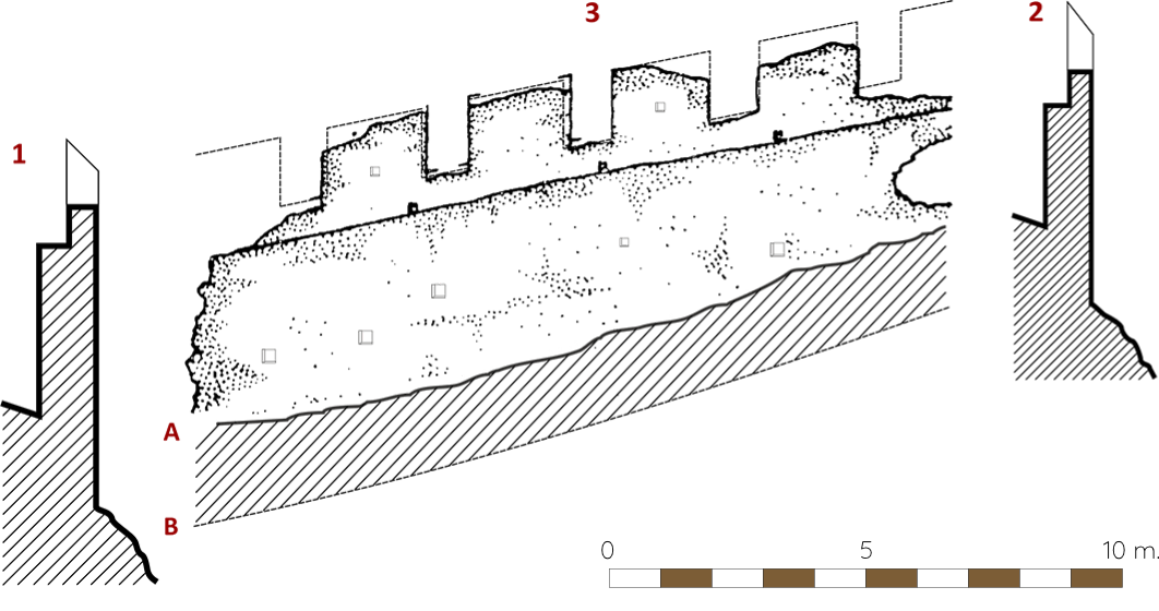 - Vnitřní nárys zachované části hradby s cimbuřím