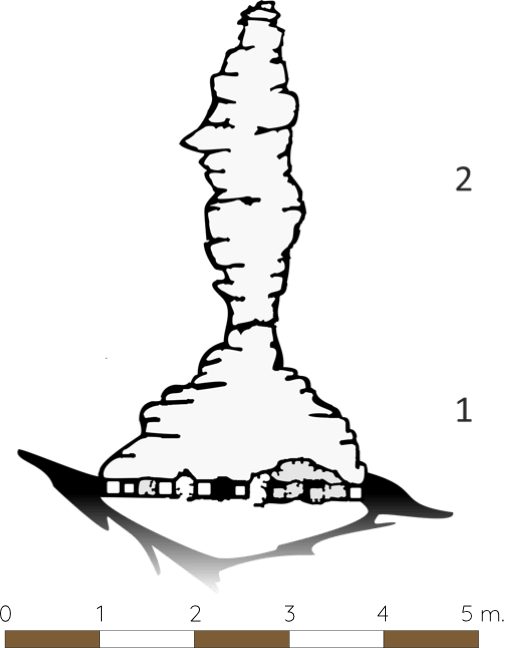 Zůstala z ní pouze strmá vyvýšenina, probraná ve středu kruhovou šachtou 23, kus zdi a malý úsek vnějšího líce věže, skrytý mezi stromy. Zato okolí věže, na sever a západ od ní, je poseto a přímo rozdrceno jejími zbytky – ohromnými balvany zdiva. Věž byla roztříštěna násilným výbuchem a její hmota vymrštěná ze svého místa. Obrovitost balvanů zdiva, dosahujících více jak stometrové kubatury a váhy až tří set tun 24, prozrazuje sílu a nákladnost výbuchu, tím i mocenský význam násilného zničení hradu v souvislosti s jeho obrovským politicko-strategickým významem. Dokonalost vazby věžního líce i jeho vnitřní struktury 25, odhaluje spolu s tloušťkou stěn záměrnost kvalitního vybudování staticky nadměrné až přeurčené konstrukce. I z těchto znaků můžeme odvodit značnou výšku věže 26, která musela vyvážit rozhledové nedostatky hradu, skrytého mezi stejně vysokými kopci a odstoupeného mezi nimi od údolní cesty. Zničením hlásky korvínovskými vojsky v sedmdesátých letech 15. století byl omezen strategický význam hradu, zbořením paláce a budov nad třetí bránou a v dolním hradě 27 byla zmařena možnost ubytování posádky. I podkopáním a stržením některých úseků hradeb na strmých svazích, byla znemožněna jakákoliv obrana hradu a ztíženo na maximum jeho znovu vybudování, k němuž již také nedošlo. Jedině na podkladě této úvahy můžeme pochopit vzájemnou kontrastnost hradních jevů – existenci několika neporušených hranatých věží a úplnou destrukci hradní hlásky, zachování hradeb a rozrušení zdí obytných budov vedle nich až do základů, drastičnost skoku z téměř neporušené hradby s cimbuřím do jejího sousedství, kde není po hradbě nejmenší stopy. Je jisté, že nebýt násilné, záměrné destrukce hradu, byl by se prvotřídně vybudovaný Nový hrad, vzdálený od lidských obydlí i frekventovaných turistických cest, uchoval v poměrně dobrém stavu až do dnešní doby 28.